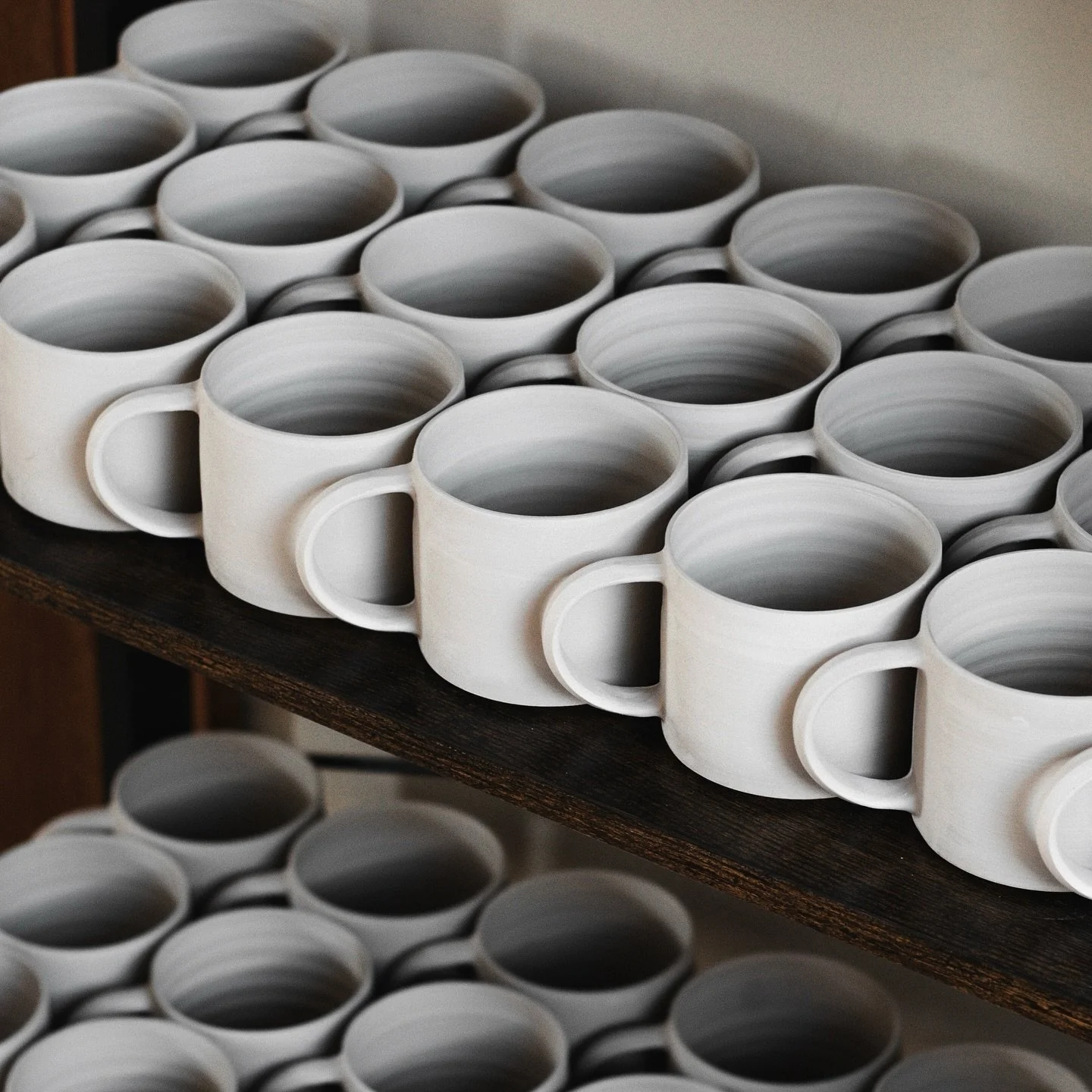 View fullsize Trimmed 60 mug bodies today, it felt great to get back into the flow of my own making. Handles are prepped and ready to be attached later this week, as I’ll be away from the studio, teaching and attending a porcelain workshop. It’ll be th